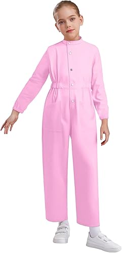 YiZYiF Girls Stand Collar Jumpsuit Romper Coverall One Piece Mechanic Boiler Suit Straight Leg Cargo Pant Pink 8 Years