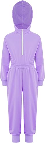 YiZYiF One Piece Overalls for Girls Casual Jumpsuit Dungarees Long Sleeve Playsuit Wide Leg Pants Hoodie Rompers(Lavender,10 Years)
