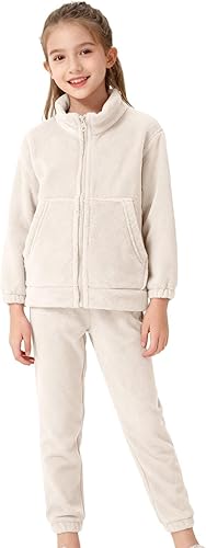Comfort Warmth Winter Casual Set for Indoor Wear: Adorable and cozy fuzzy pants set for girls, with a comfortable relaxed fit that allows for easy movement and play. The soft, insulating furry fabric effectively retains body heat and helps keep kids warm and comfortable, plush and exceptionally soft, great for the fall and winter months, perfect daily casual wear for girls and teens. This unisex soft fleece set features solid embroidery for added cuteness and warmth