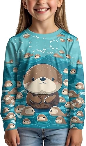 Ystardream Cute GraphicTees for Girls Long Sleeve Shirts for Casual School Everyday Loung Wear(Cute Otter,9-10 Years)