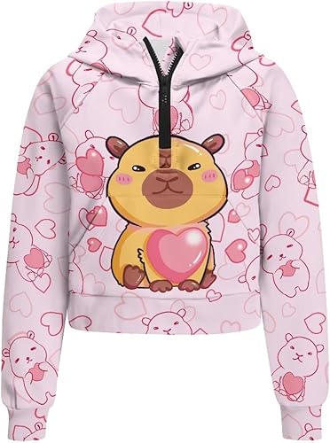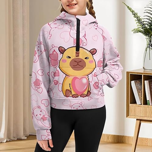 Ystardream Cute Sweatshirts for Girls Zip Up Hoodie with Pocket for Outdoor Sports(Baby Capybara,11-12)