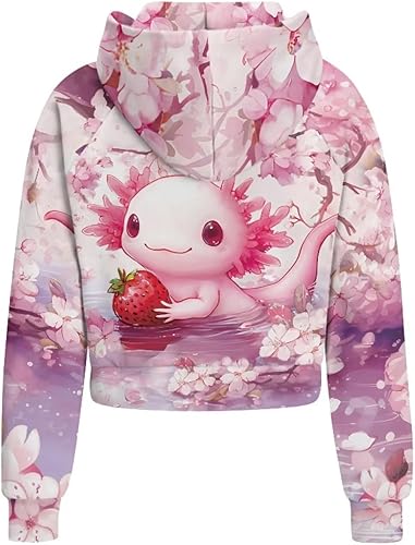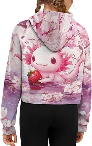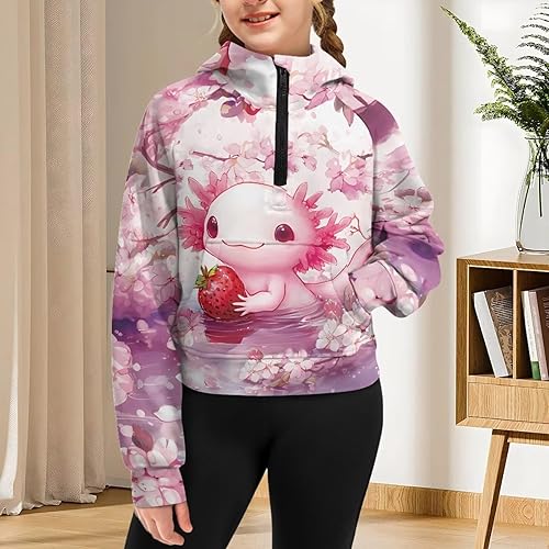 Ystardream Half Zip Up Hoodies for Girls' Fashion Hoodies & Sweatshirts for Casual(Sweet Axolotl,11-12)