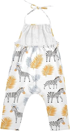 Zebra and Leaf Toddler Girl Clothes Sleeveless Romper Jumpsuit for Girls Summer One Piece Romper Pants Size 1-6T(Multicolor,1T)