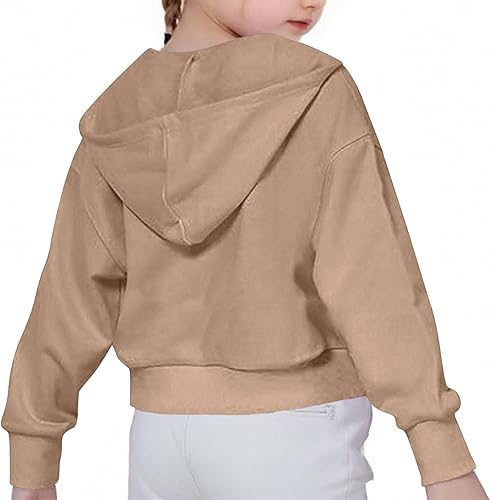 Zip Up Hoodie Girls Cropped Long Sleeve Sweatshirt Solid Color Hooded Clothes Fall Winter Casual Coats With Pockets(Ag115-khaki,4-5T)