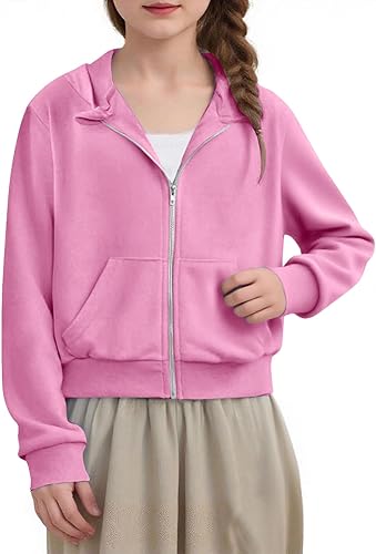 DESIGN:Girls hooded features classic cute cropped design,long sleeve,elastic ribbed hem and cuffs.Metal zipper,smooth and durable.Fashion crop tops sweatshirt,match everything,suitable for a variety of styles.