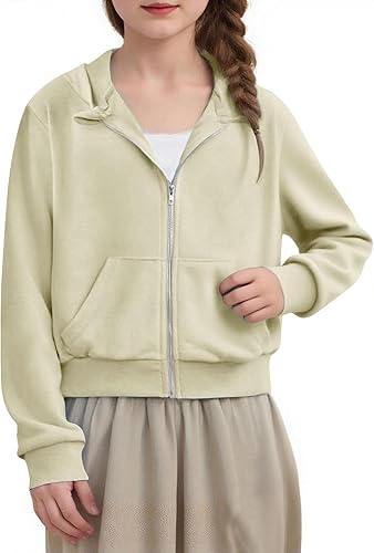 【Casual Zip-Up Design】This girls' hoodie features a full-length zipper closure with oversized cut and long sleeves. The loose fit offers comfortable wear with pockets adding practical storage place.
