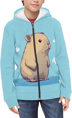 ❤ Material: High quality polyester, super soft, lightweight, comfy and close to your kids's skin; Zip up, drawstring design, front kangaroo pocket, long sleeves, hooded neck, loose style
